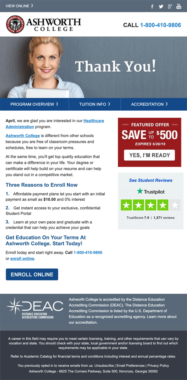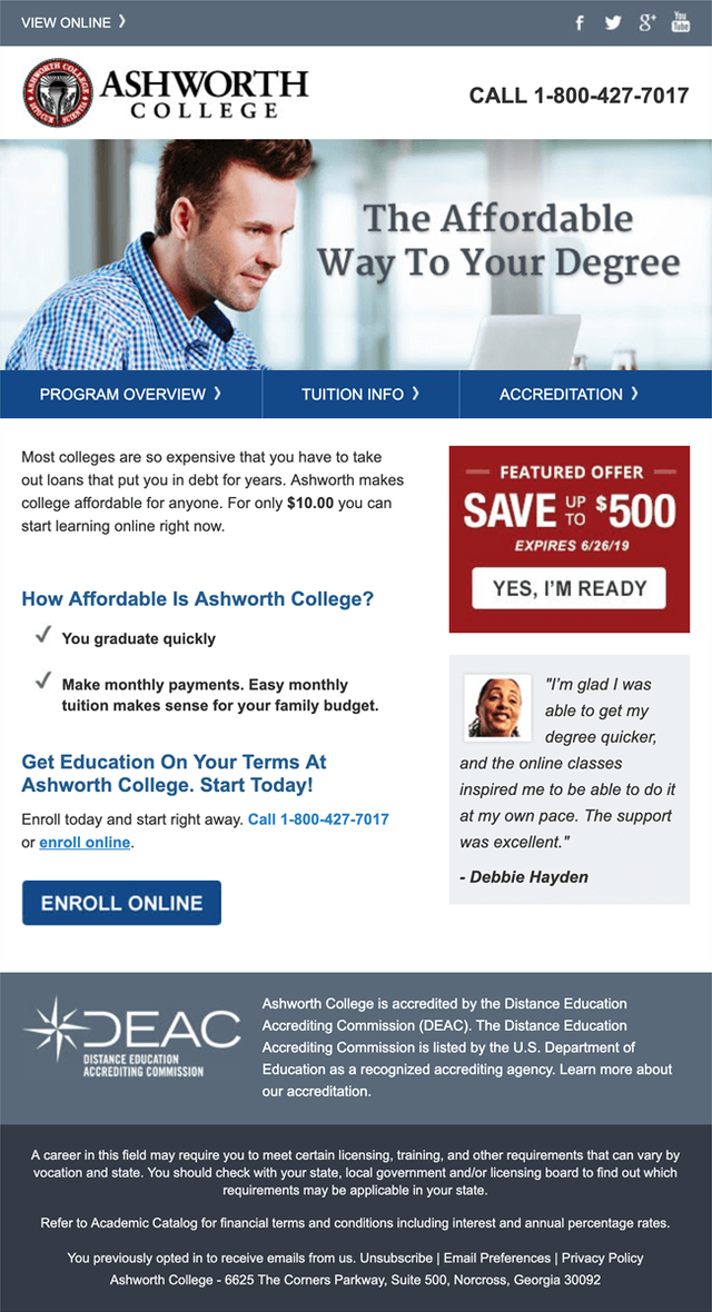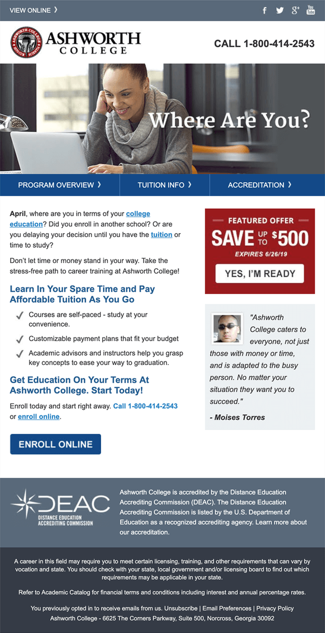 SUBJECT LINE: APRIL, ASHWORTH MAKES COLLEGE AFFORDABLE
