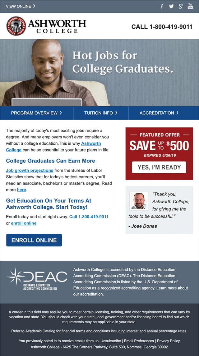 L2E Email campaign sent to prospective students to educate them about the course and to engage them to enroll. Campaign runs through IBM Watson Marketing (Silverpop).